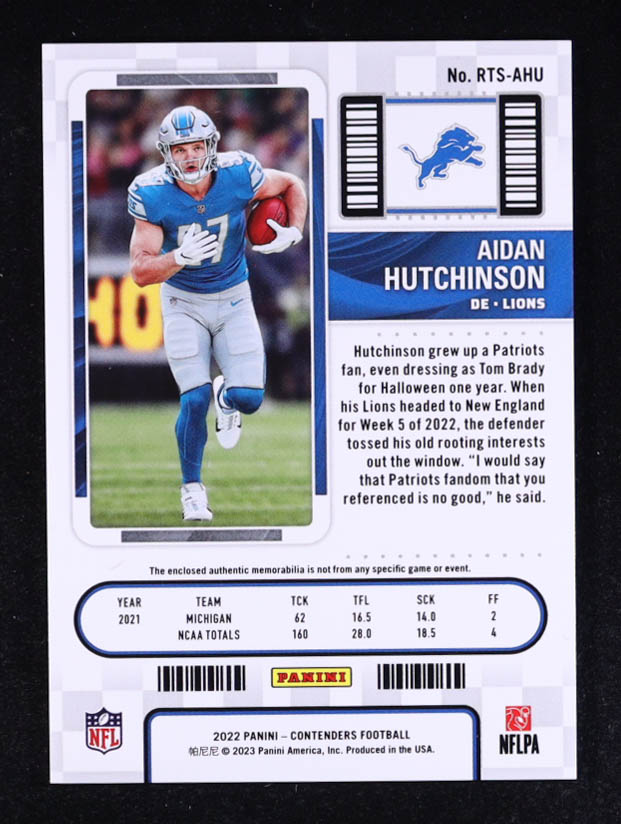 Aidan Hutchinson 2022 Panini Contenders Rookie Ticket Swatches #2 RC