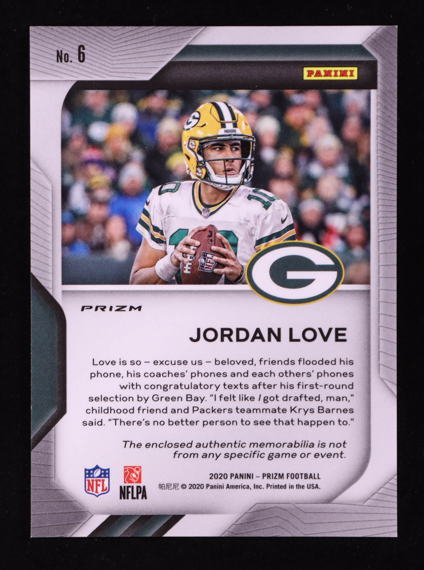 Jordan Love 2020 Panini Prizm Premier Jerseys #6 RC