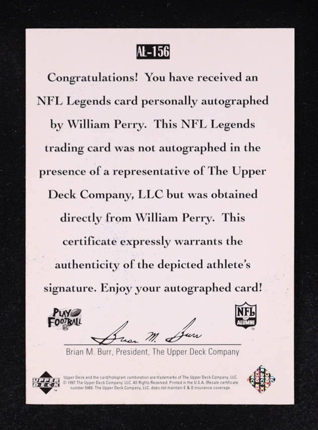 William Perry 1997 Upper Deck Legends Autographs #AL156