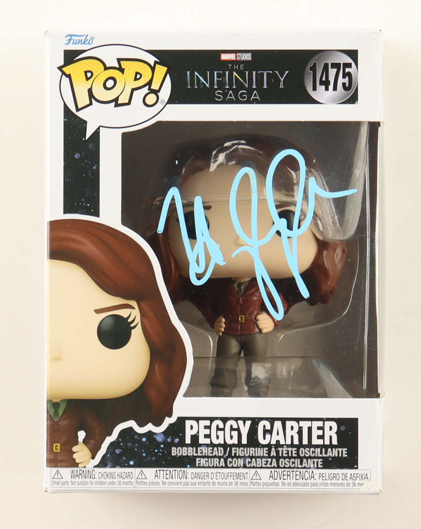 Funko Pop! Figure measures approximately 4" tall and the packaging has been hand-signed by Hayley Atwell.