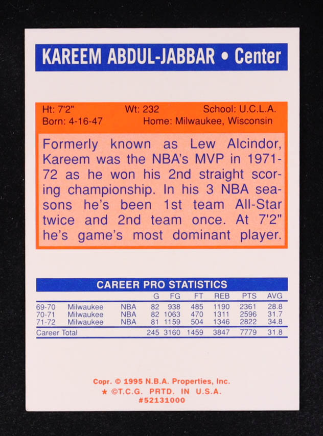 Kareem Abdul-Jabbar 1995 Kenner Starting Lineup Timeless Legends Cards #1