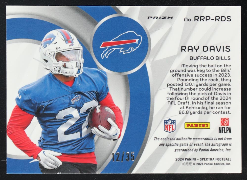 Ray Davis 2024 Panini Spectra Radiant Rookie Patch Signatures Neon Green #19 RC #12/35