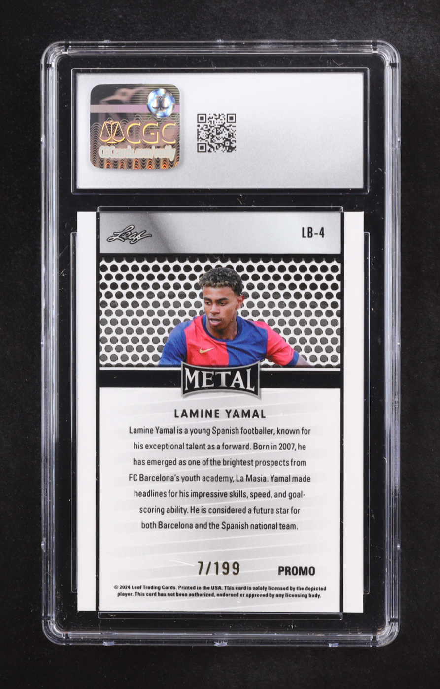 Lamine Yamal 2024 Leaf Collective Promo Leaf Shimmer Purple #LB4 #07/199 (CGC 10)