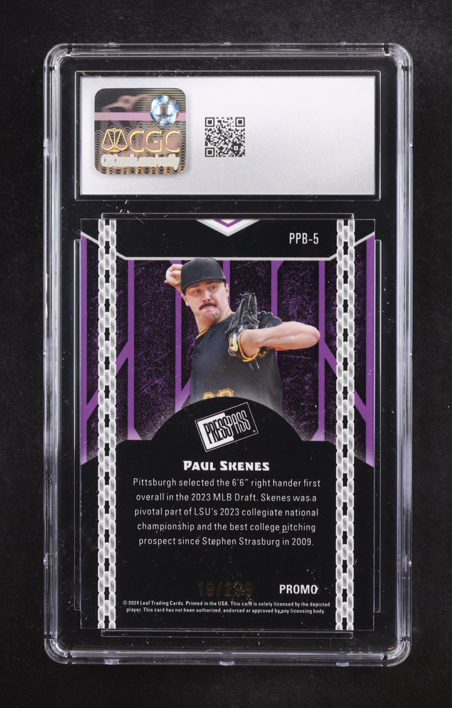 Paul Skenes 2024 Leaf Collective Promo Press Pass Shimmer Orange #PPB5 #019/299 RC (CGC 10)