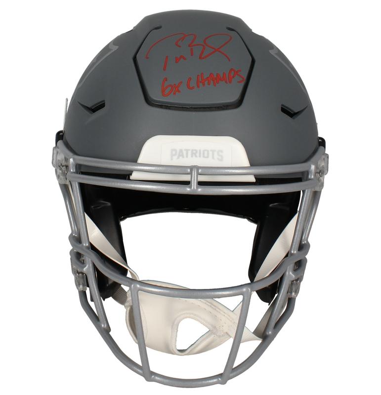 Tom Brady Signed LE Patriots Full-Size Authentic On-Field Slate Alternate Speedflex Helmet Inscribed "6x Champs" (Fanatics)