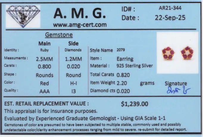 0.82 CTW Natural Diamonds & Ruby 18K Gold Plated Designer Earrings | Estimated Value $1,239 (AMG)