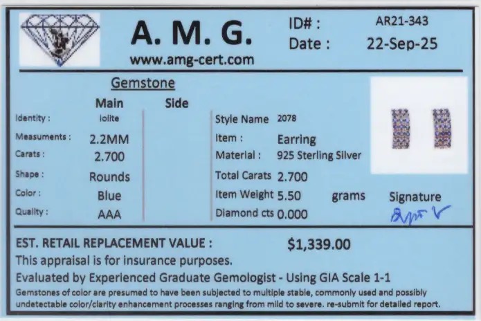 2.70 CTW Natural Iolite Rhodium Plated Designer Earrings | Estimated Value $1,339 (AMG)