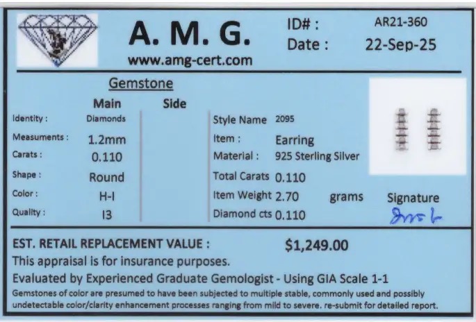 0.11 CTW Natural Diamonds Rhodium Plated Designer Earrings | Estimated Retail Value: $1,249 (AMG)