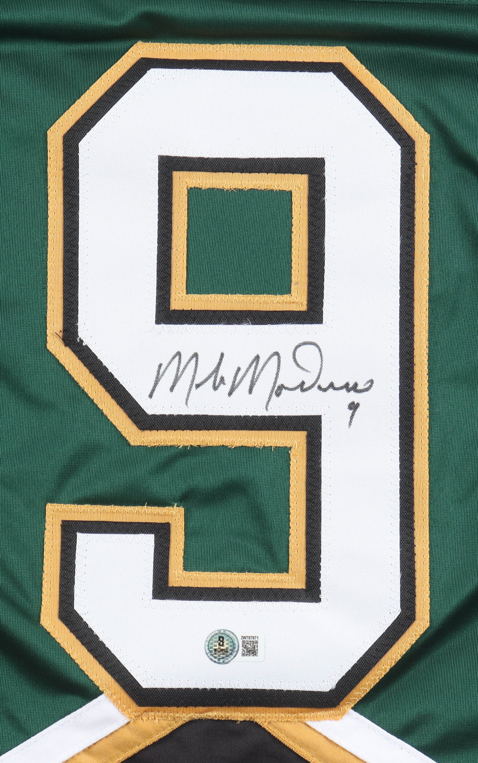 Custom jersey with everything sewn on, size XL. Hand-signed by Mike Modano (Dallas Stars, HOF).