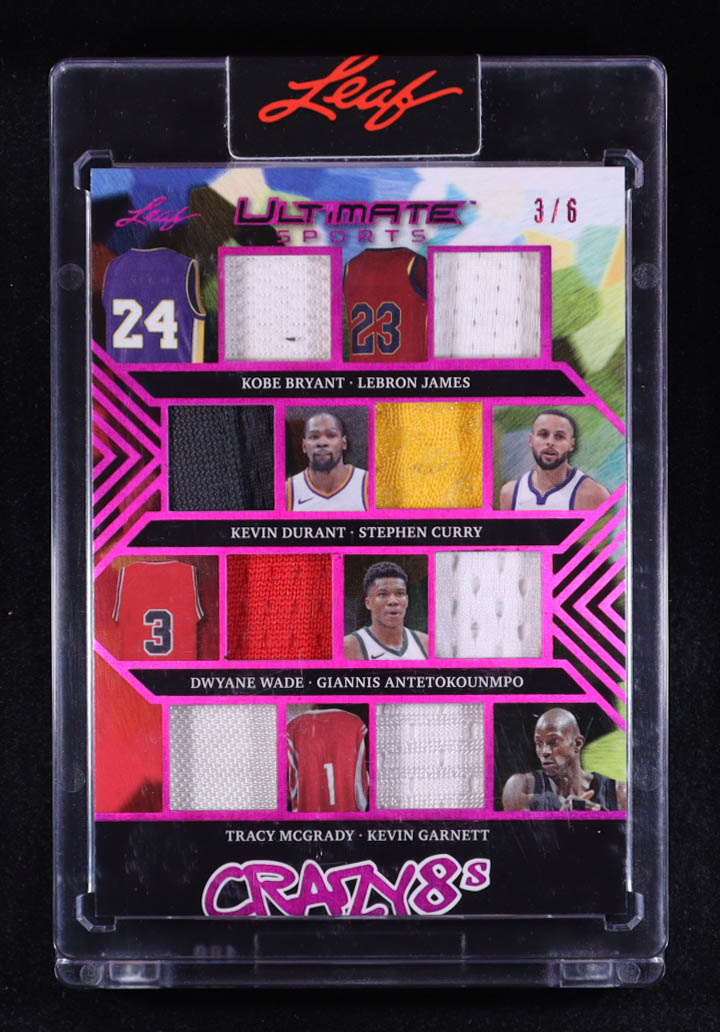 Kobe Bryant / Lebron James / Kevin Durant / Stephen Curry / Dwyane Wade / Giannis Antetokounmpo / Tracy McGrady / Kevin Garnett 2024 Leaf Ultimate Sports Crazy 8s Pink #C85 #3/6