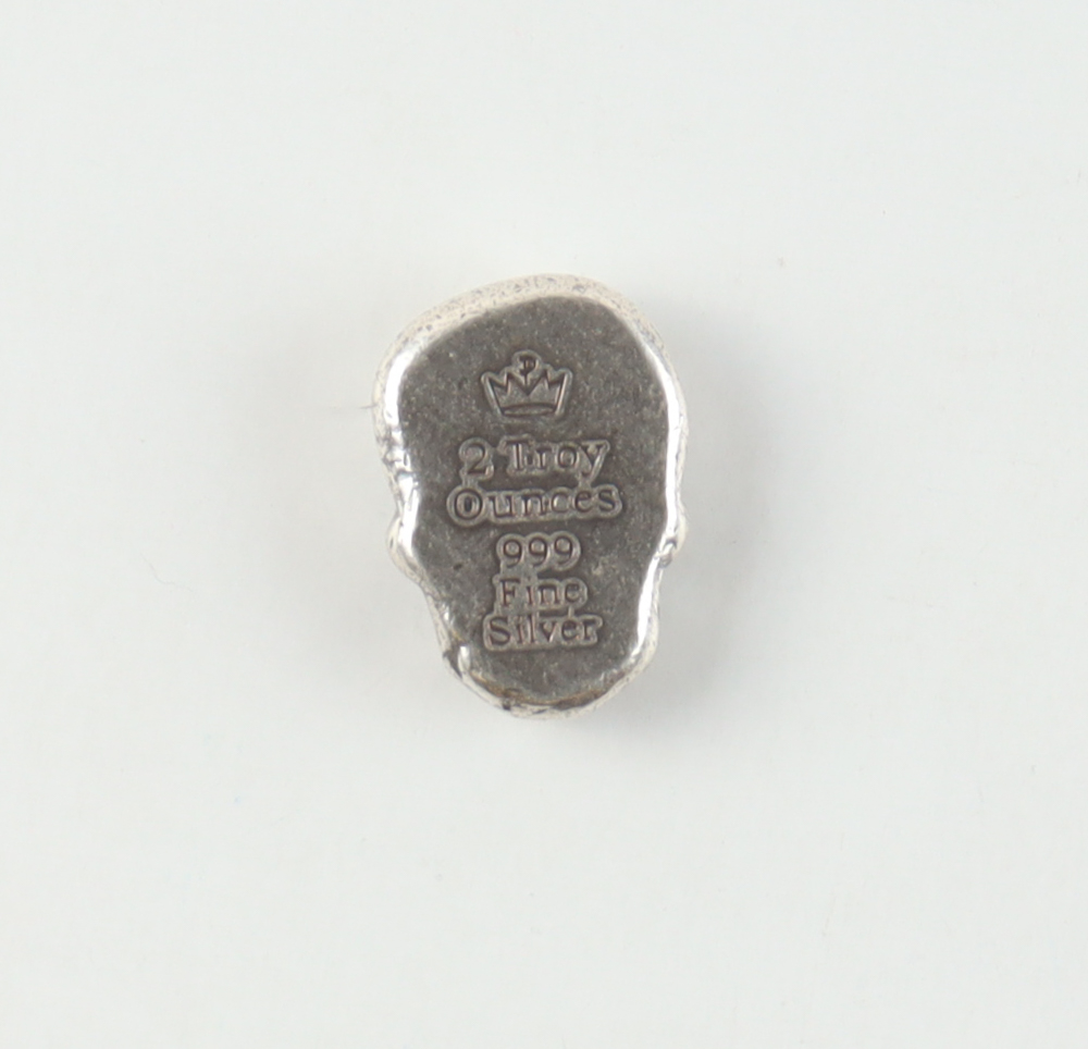 2 Troy Oz Skull .999 Fine Silver Monarch Precious Metals