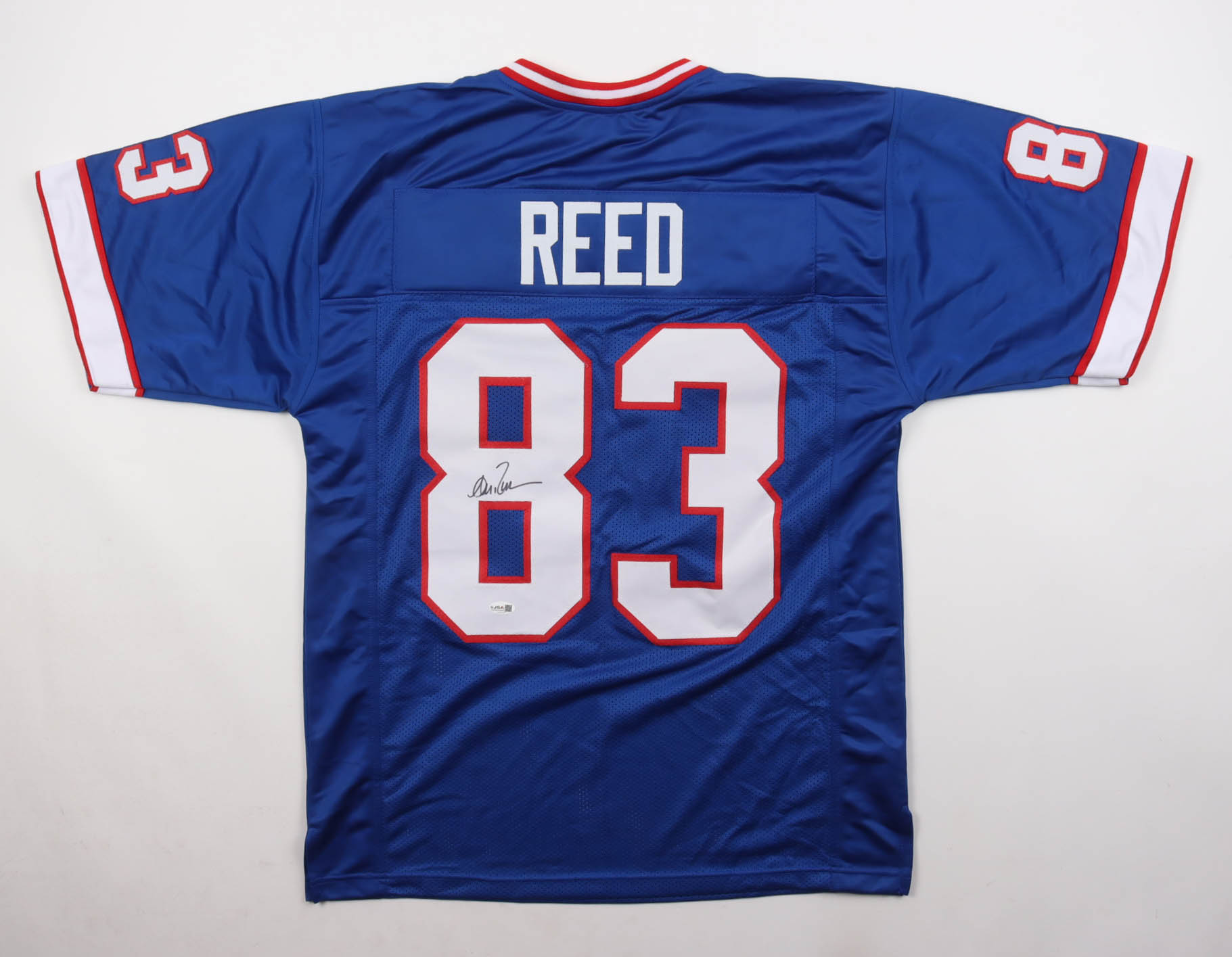 Custom jersey with everything sewn on, size XL. Hand-signed by Andre Reed.