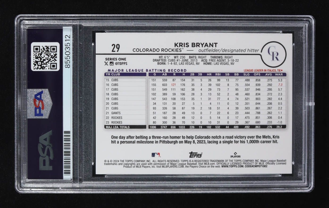 Kris Bryant Signed 2024 Topps Series One #29 (PSA)