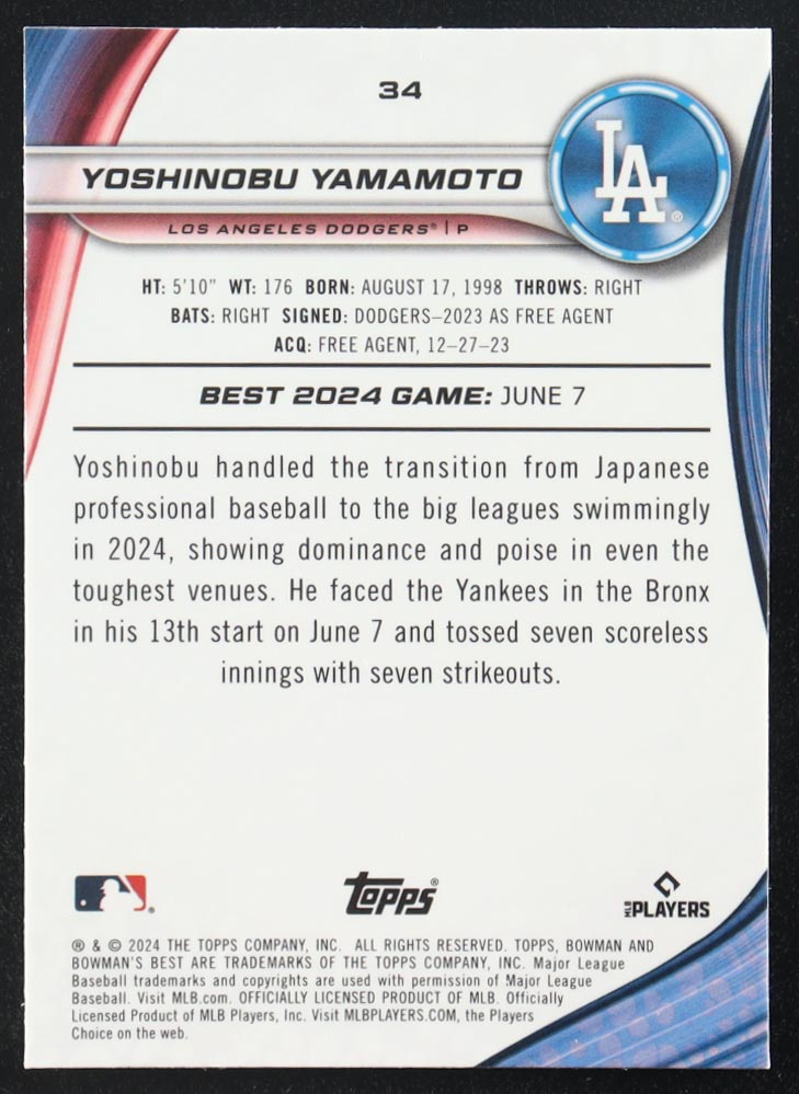 Yoshinobu Yamamoto 2024 Bowman's Best #34 RC
