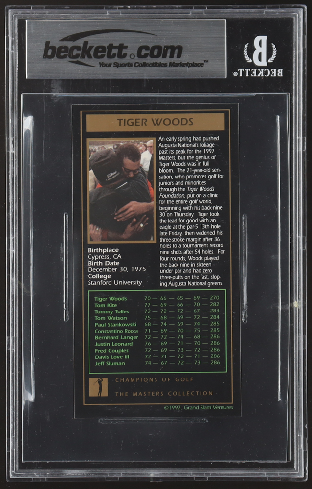 Tiger Woods 1997-98 Grand Slam Ventures Masters Collection #1997 XRC RC (Beckett 9)