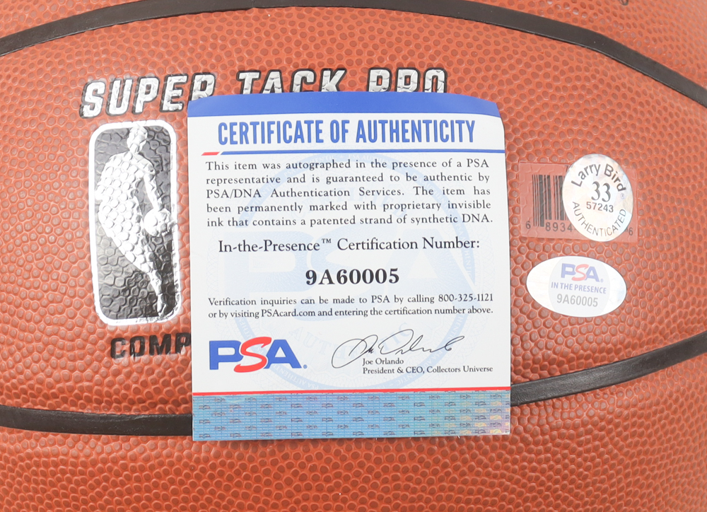 The lot / autograph(s) includes an official PSA/DNA hologram and matching COA as well as an official Larry Bird player hologram for authenticity purposes. The signing of this item was witnessed by PSA.