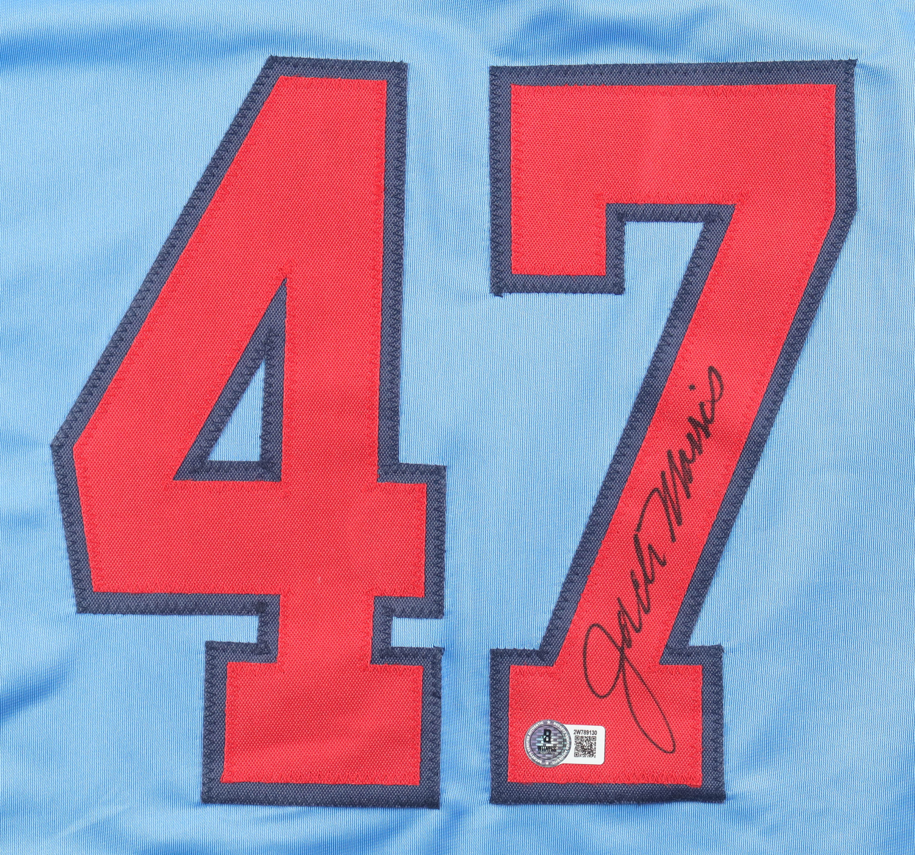 Custom jersey with everything sewn on, size XL. Hand-signed by Jack Morris (Minnesota Twins).