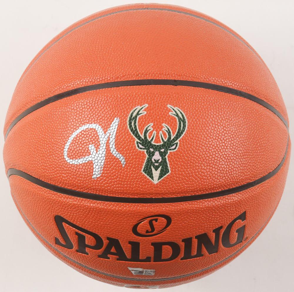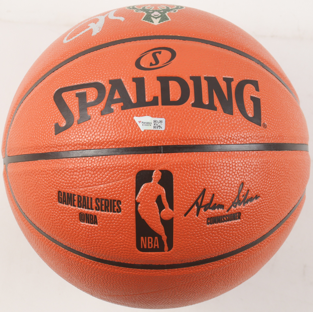 Spalding Game Ball Series NBA basketball. Hand-signed by Giannis Antetokounmpo (Milwaukee Bucks). Display case is included as shown.