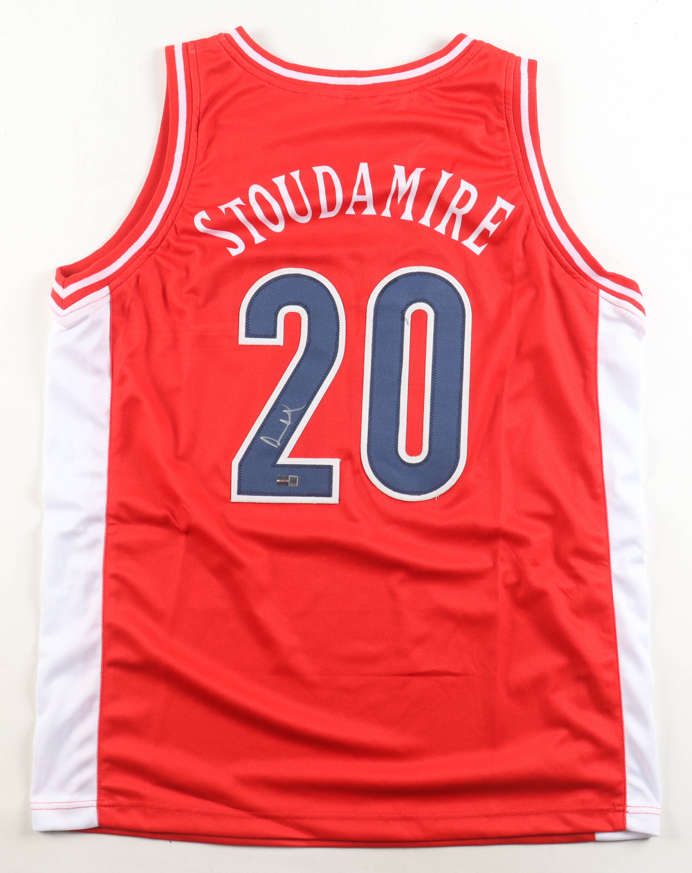 Custom jersey with everything sewn on, size XL. Hand-signed by Damon Stoudamire.