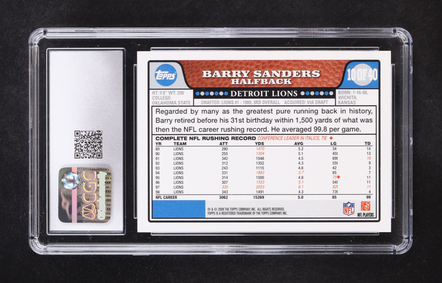 Barry Sanders 2008 Topps Turn Back the Clock #10 (CGC 10)