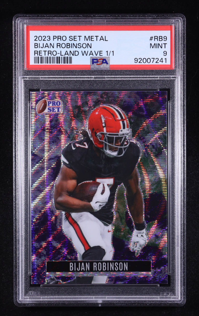 Bijan Robinson 2023 Leaf Pro Set Metal Retro Wave Land #RB-9 #1/1 RC (PSA 9)