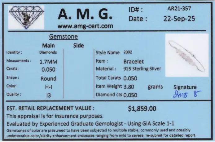 .05 CTW Natural Diamonds Rhodium Plated Designer Bracelet 7.5 Inches | Estimated Retail Value: $1,859 (AMG)
