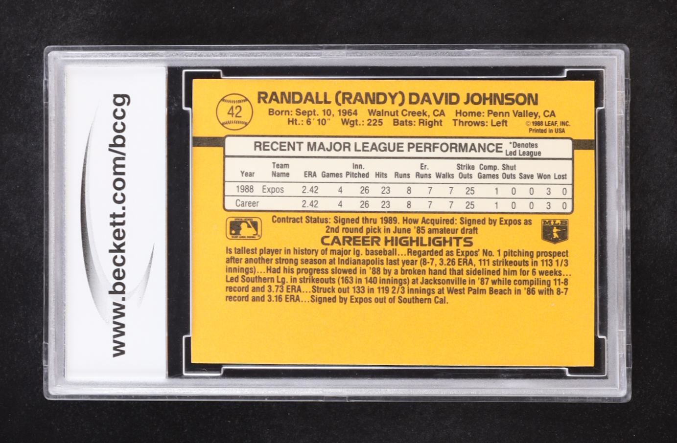 Randy Johnson 1989 Donruss #42 RR RC (BCCG 10)