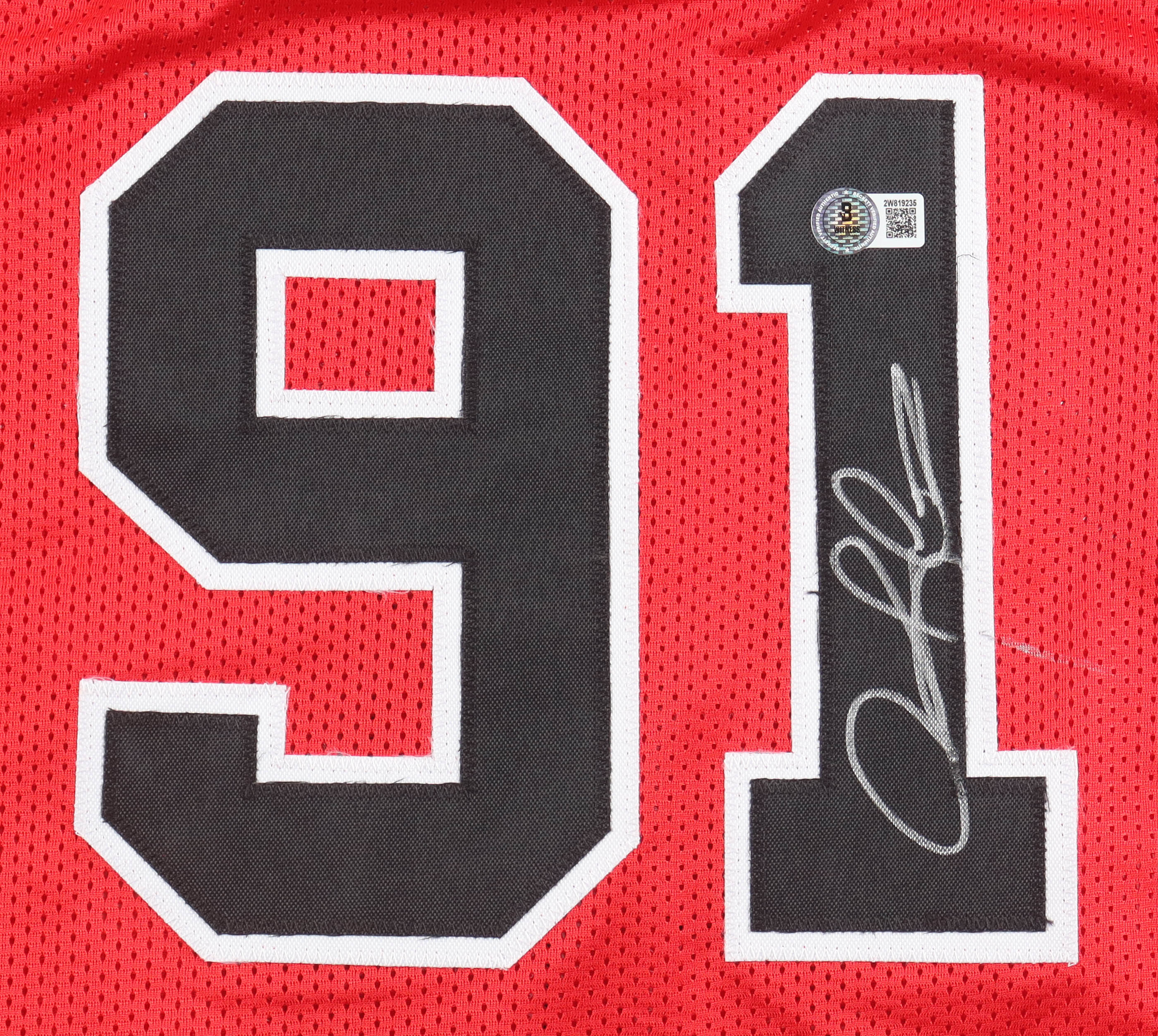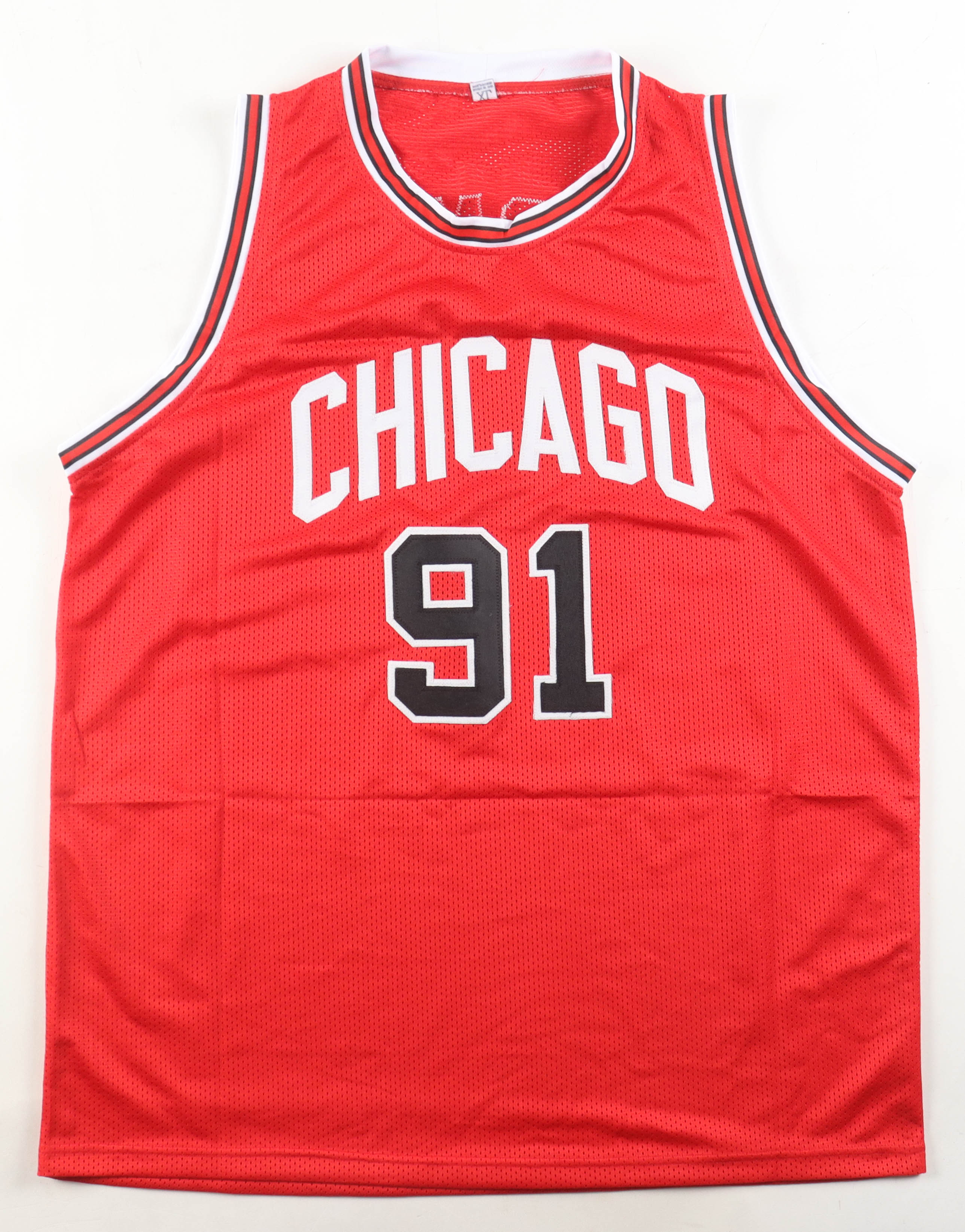 Custom jersey with everything sewn on, size XL. Hand-signed by Dennis Rodman (HOF).