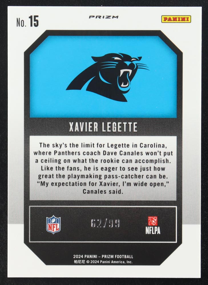 Xavier Legette 2024 Panini Prizm Emergent Prizms Blue Ice #15 RC #62/99