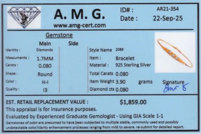 .08 CTW Natural Diamonds 18K Gold Plated Designer Bracelet 7.5" | Estimated Retail Value: $1,859 (AMG)