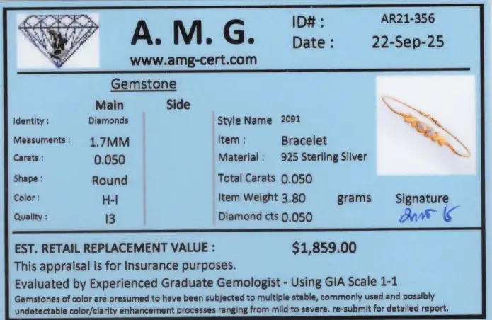 .05 CTW Natural Diamonds 18K Gold Plated Designer Bracelet 7.5 Inches | Estimated Retail Value: $1,859 (AMG)