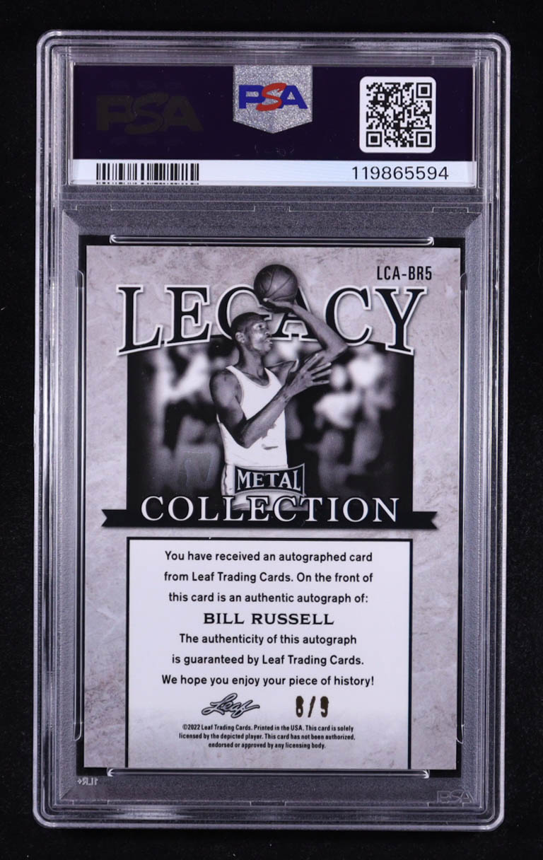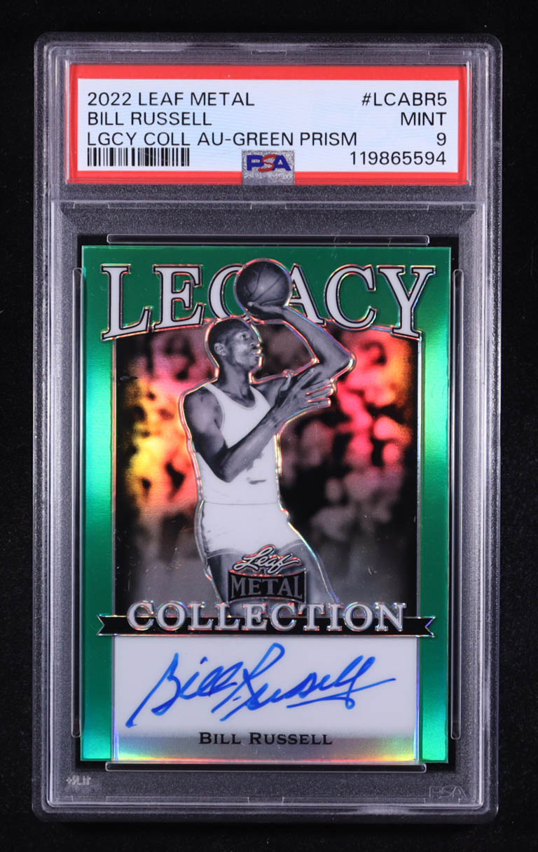 Bill Russell 2022 Leaf Metal Legacy Collection Signatures Prismatic Green #LCABR5 #8/9 (PSA 9)