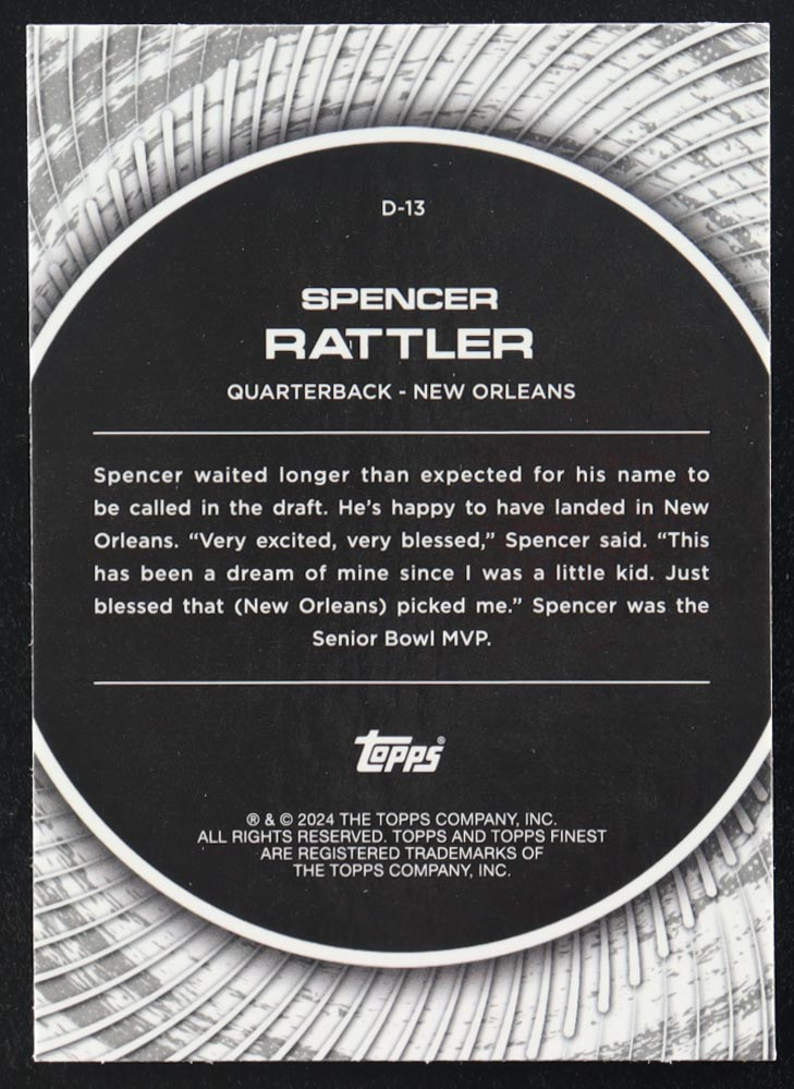 Spencer Rattler 2024 Finest Debuts Blue Refractors #D13 RC #3/99
