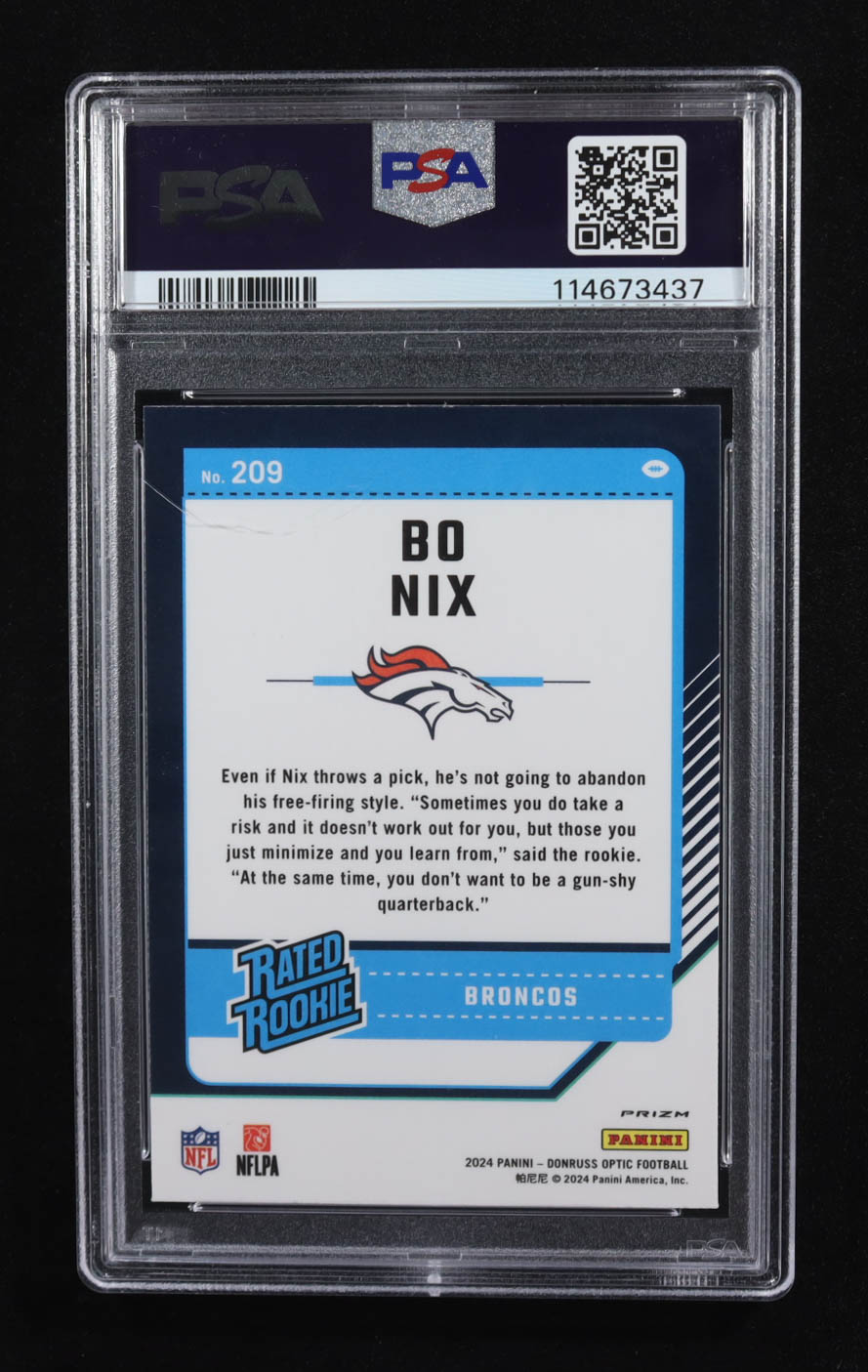 Bo Nix 2024 Donruss Optic Blue Hyper #209 RR RC (PSA 10)