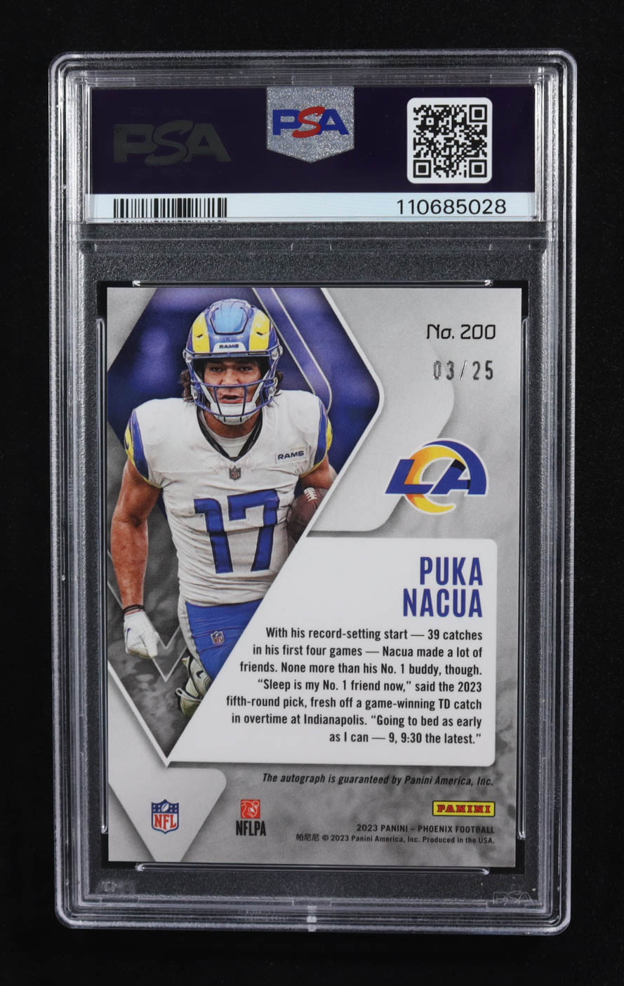 Puka Nacua 2023 Panini Phoenix Rookie Autographs Blue Ice #200 RC #03/25 (PSA 10 | Autograph Graded 10)