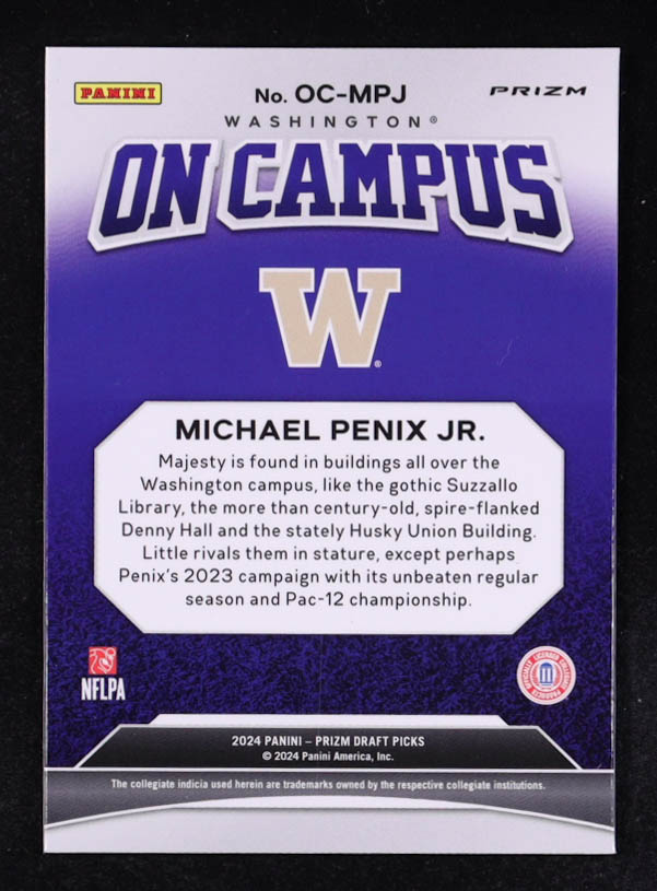 Michael Penix Jr. 2024 Panini Prizm Draft Picks On Campus #3 RC