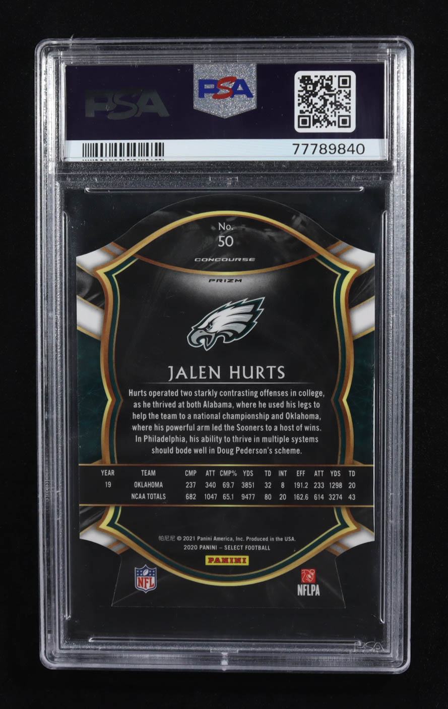 Jalen Hurts 2020 Select Prizm Maroon Die Cut #50 RC (PSA 10)