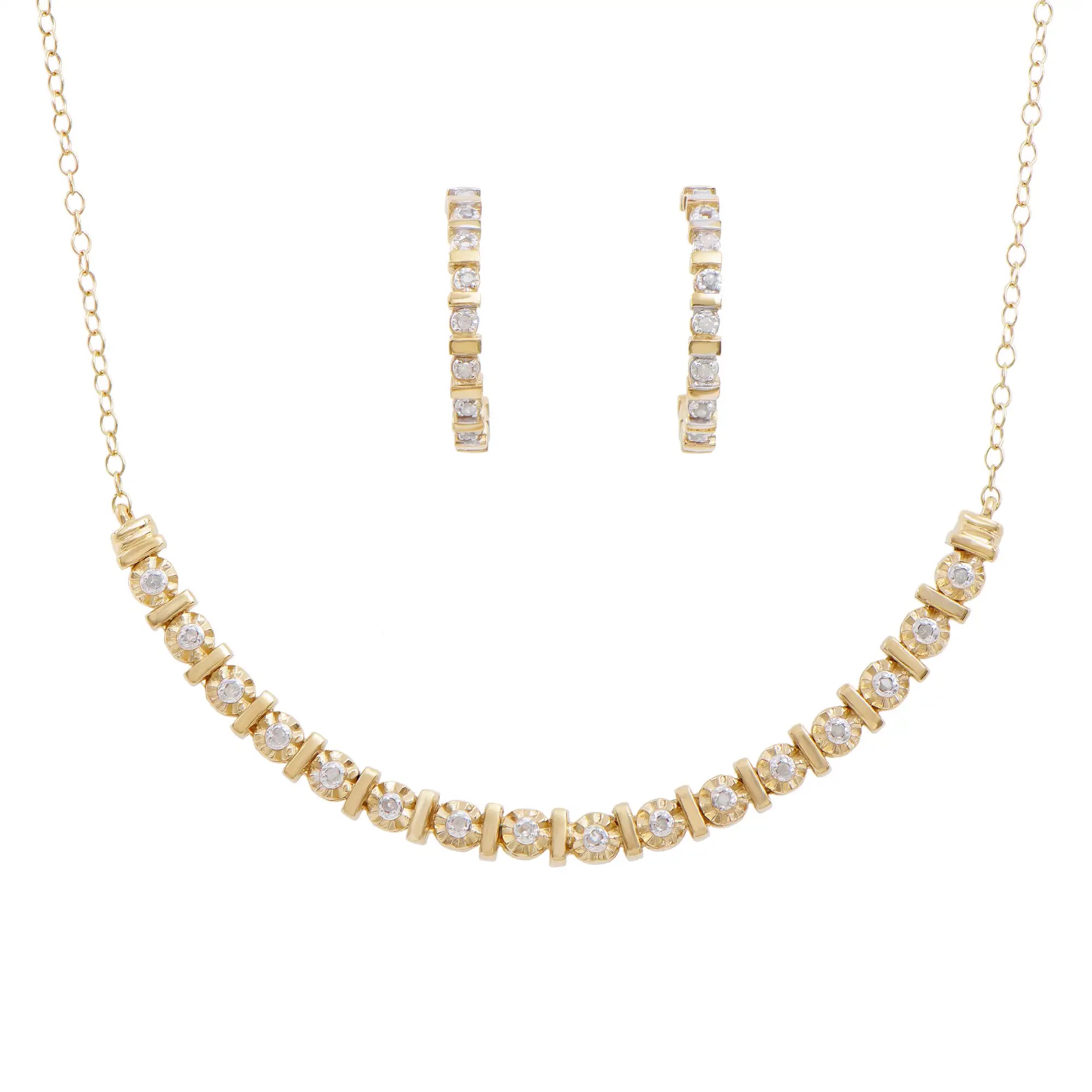 0.41 CTW Natural Diamonds 18K Gold Plated Designer Earring & Necklace Set | Estimated Value $1,899 (AMG)
