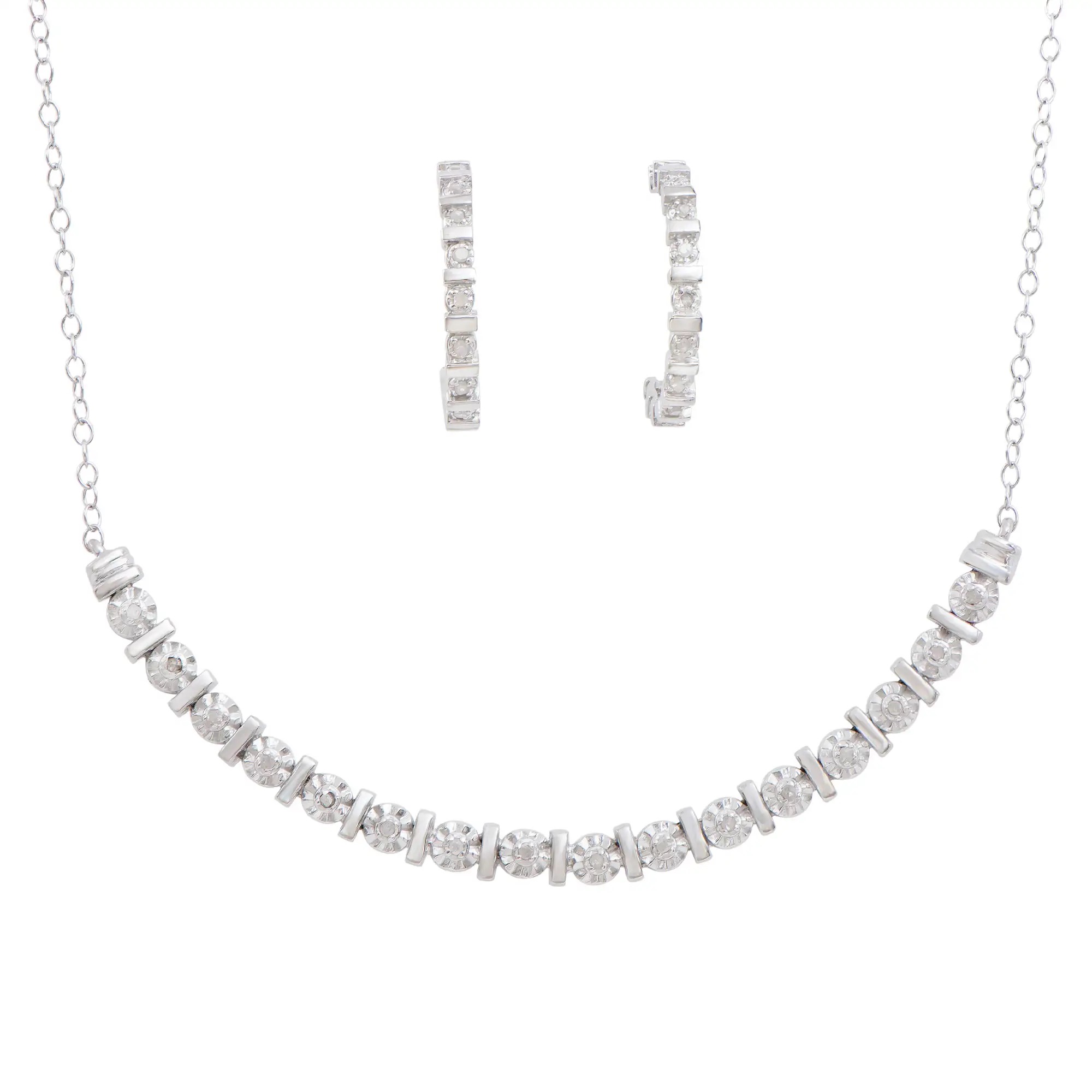 0.41 CTW Natural Diamonds Rhodium Plated Designer Earring & Necklace Set | Estimated Retail Value: $1,899 (AMG)
