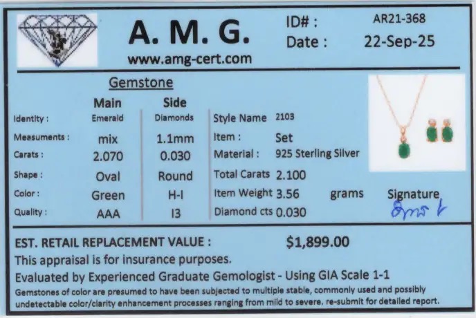 2.10 CTW Natural Diamonds & Emeralds 18K Gold Plated Designer Necklace & Earring Set | Estimated Retail Value: $1,899 (AMG)