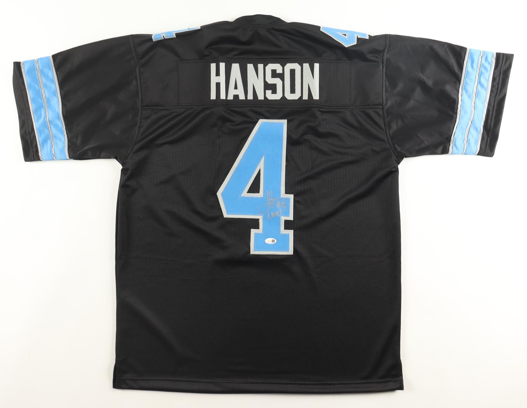 Custom jersey with everything sewn on, size XL. Hand-signed by Jason Hanson.