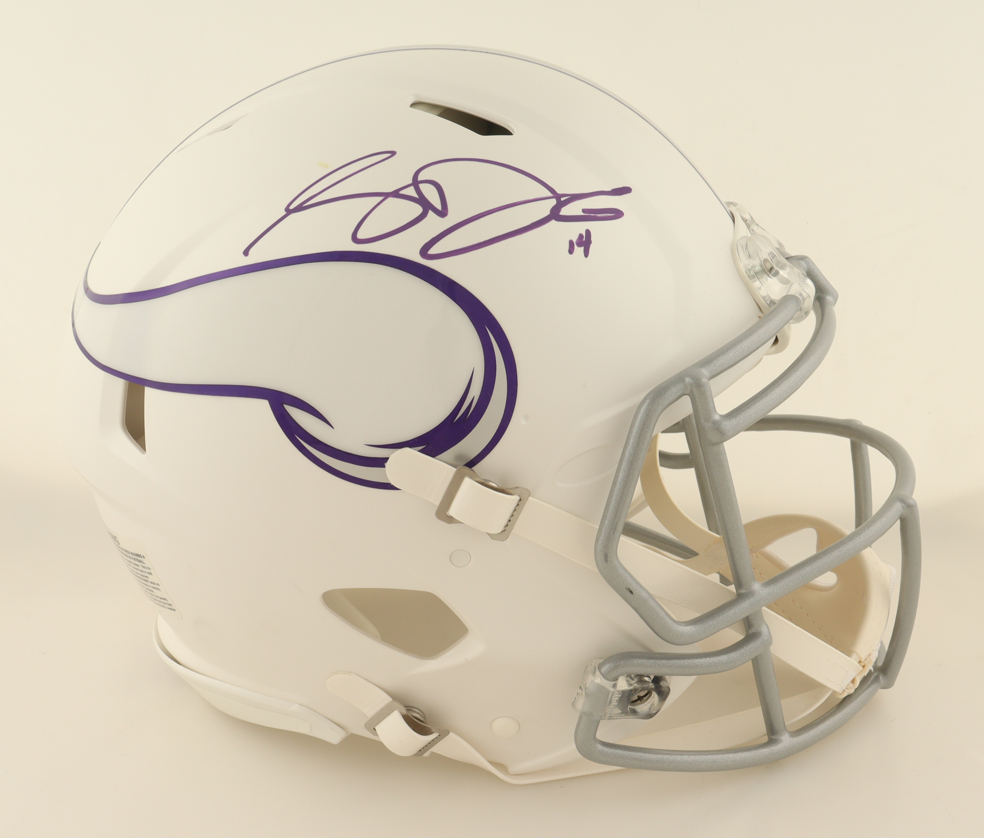 Riddell Minnesota Vikings Full-Size Authentic On-Field Alternate Speed Helmet. Hand-signed by Sam Darnold. Please note, there is a stains above the signature.