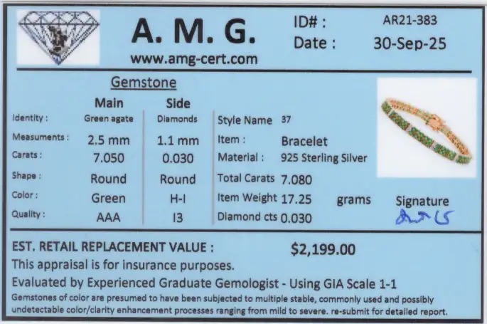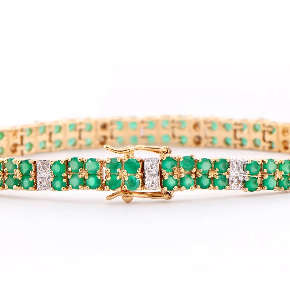 7.08 CTW Green Agate & Diamonds 18K Gold Plated Designer Bracelet Size 7.6 Inches| Estimated Retail Value: $2,199 (AMG)