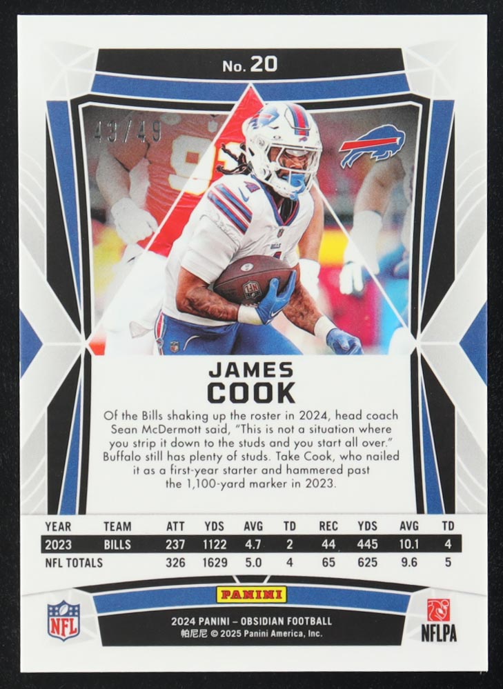 James Cook 2024 Panini Obsidian Red #20 #43/49