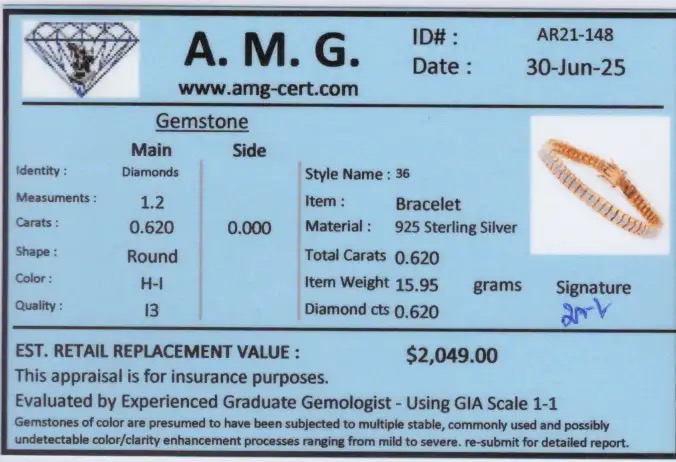 0.62 CTW Diamonds 18K Gold Plated Designer Bracelet Size 7.75 Inches| Estimated Retail Value: $2,049 (AMG)