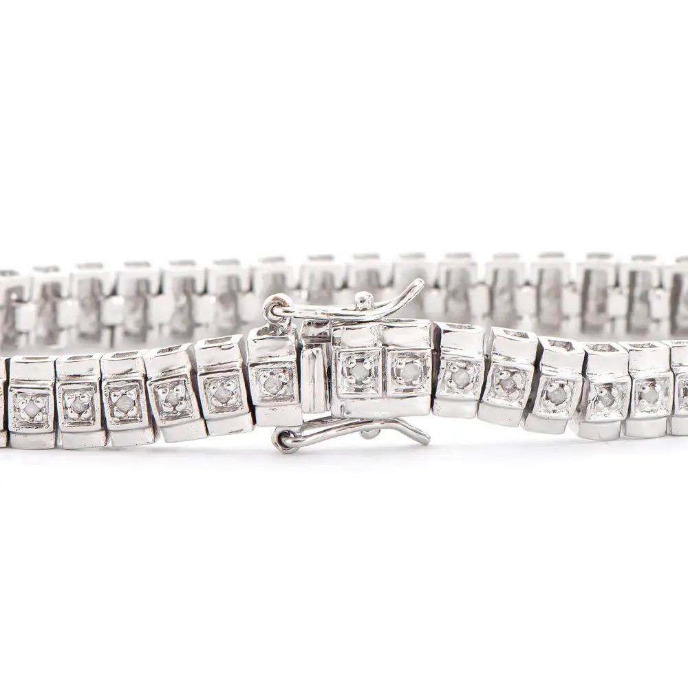 0.62 CTW Diamonds Rhodium Plated Designer Bracelet Size 7.75 Inches (15.95 grams) Contains: