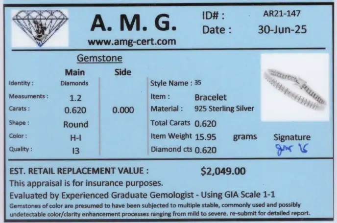0.62 CTW Diamonds Rhodium Plated Designer Bracelet Size 7.75 Inches| Estimated Retail Value: $2,049 (AMG)