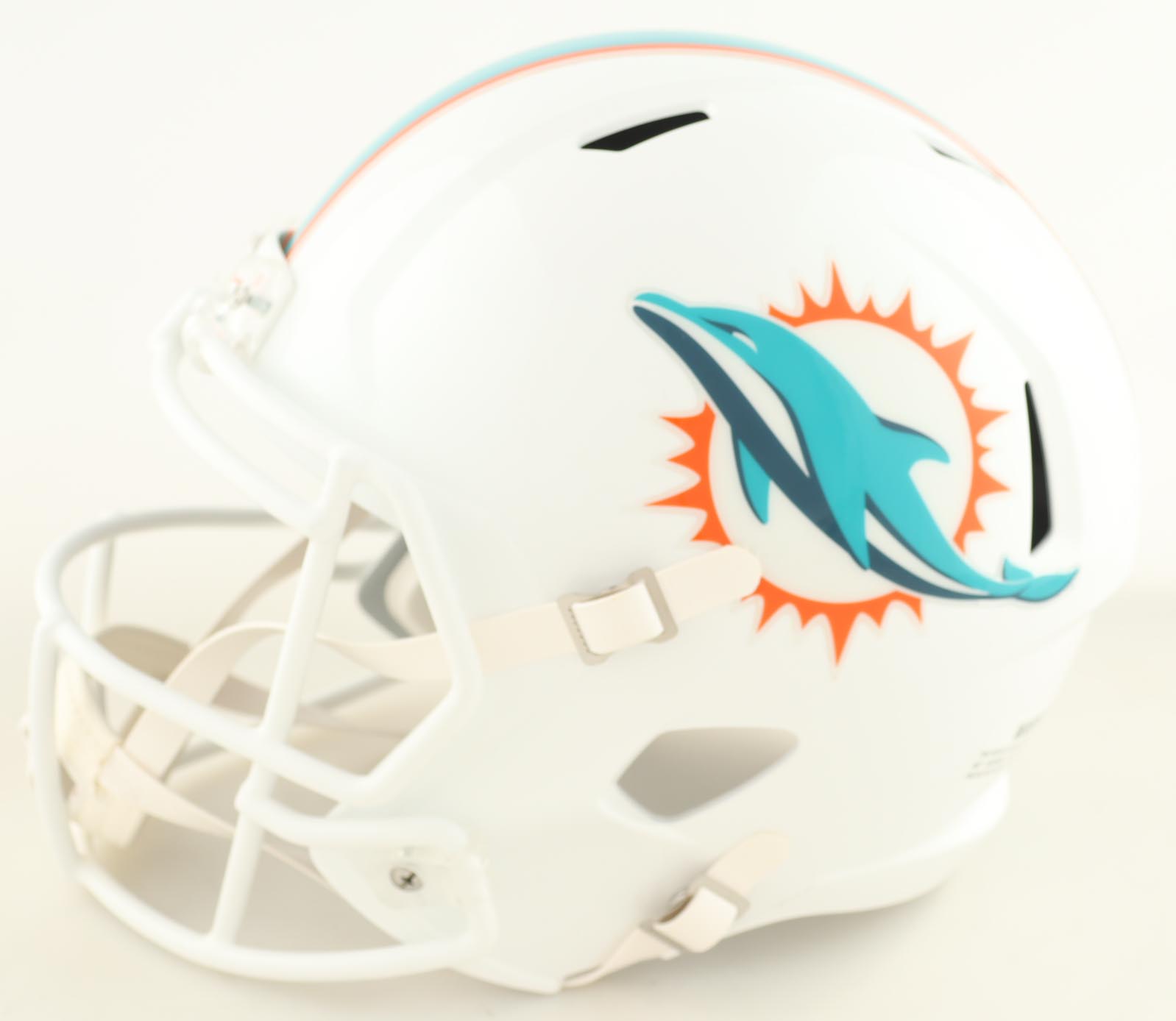 Riddell Miami Dolphins full-size speed replica helmet. Hand-signed by Odell Beckham Jr and Jaylen Waddle.