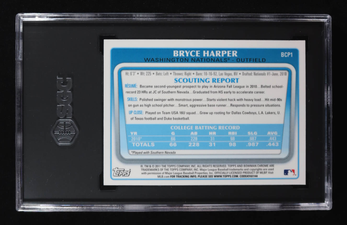 Bryce Harper 2011 Bowman Chrome Prospects #BCP1 RC (SGC 10)