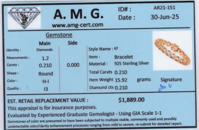 0.21 CTW Diamond 18K Gold Plated Designer Bracelet Size 7.5 Inches| Estimated Retail Value: $1,889 (AMG)